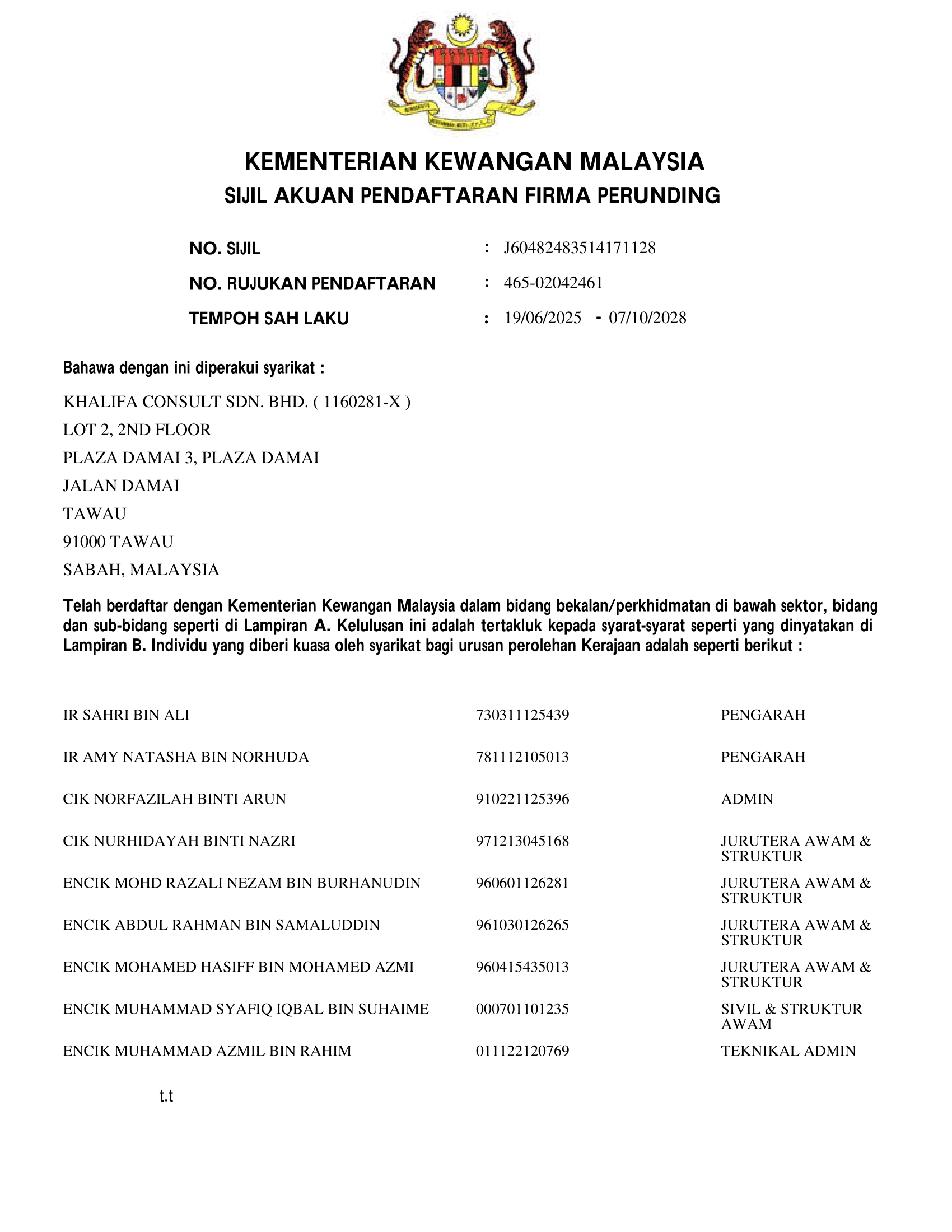 Ir. SAHRI BIN ALI Managing Director |